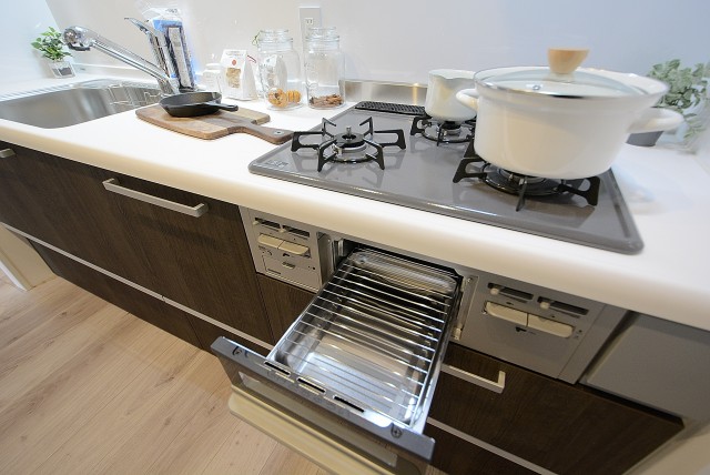 お料理がはかどる3口ガスコンロ、浄水機能付き水栓、食洗機、収納スペースたっぷりとキッチンはスペック◎!食後の後片付けが楽になれば家族とゆっくり話す時間も増えるかも・・・。