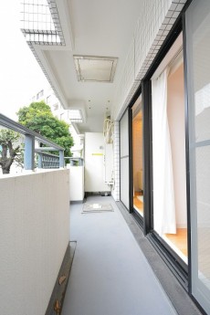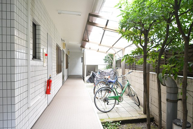 共用廊下からマンション裏手にまわり、自転車置き場があります。