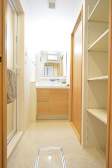 入ってすぐにリネン庫がありますので、バスタオルの収納や、シャンプーのストックなどにお使い頂けます。