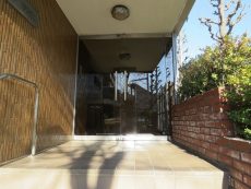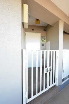 お部屋は階段移動も楽にできる2階です。低層階なので共用廊下外の線路がより近く感じます。玄関にはポーチがついています。雨が降っている時に傘を置けたりするので便利です。
