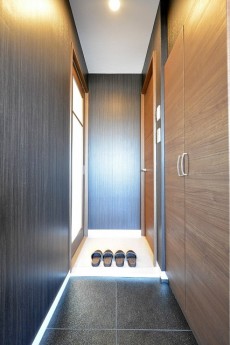 シックな色合いの玄関ホールの右側にシューズBOXが設置してあります。