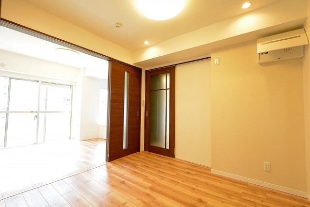 ダイニングキッチンと引き戸で仕切られたベッドルーム。
