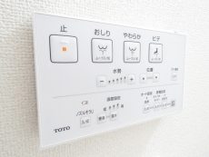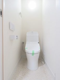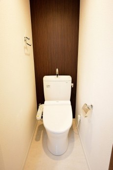 TOTOの温水洗浄便座です。おしりだって洗ってほしい。って名コピーがありましたね。収納は特にないので、後から吊戸棚などを設置するとよさそうです。DIYがお好きな方は腕がパキパキ鳴りそうです。