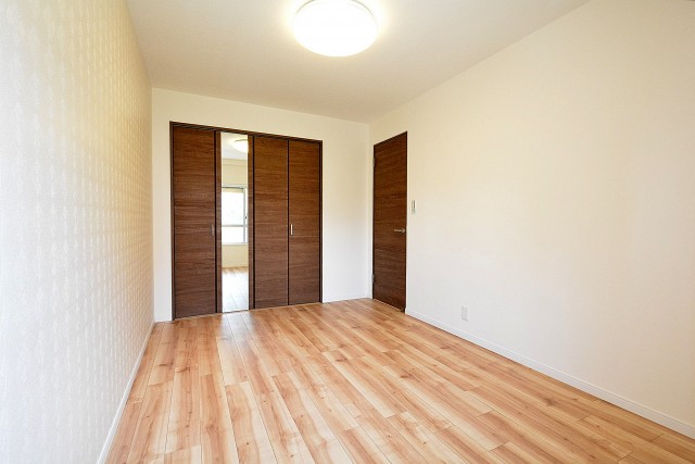 2部屋ある洋室はリビングダイニングキッチンを介していけるようになっています。リビングが家の中心にあると家族同士のコミュニケーションも自然と増えそうです(*´▽`*)リビングの窓に向かって左側に扉がある洋室を見てみましょう。
