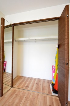姿見鏡付きのクローゼットは奥行があり十分な容量があります。