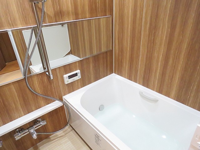 追い炊き、浴室換気乾燥機能がついています。家族の帰宅時間がバラバラでも温かいお湯に浸かれますね。ゆったりとしたバスタブも◎です。