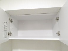 トイレは廊下をまっすぐ進んだ先。ウォシュレットと吊戸棚付き。