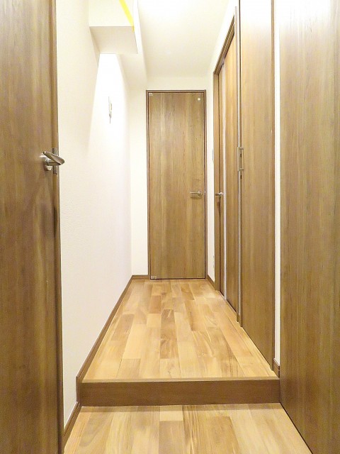 玄関をあがると目の前は廊下。途中で段差がついています。