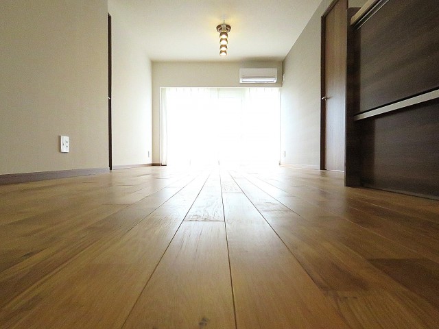 こちらは廊下に近い方の洋室。約5.0帖。もちろんフローリングは天然無垢材です。