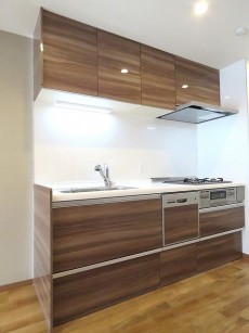 キッチンもお部屋の雰囲気にマッチする木目柄。浄水機能付き水栓、食洗機、3口ガスコンロ、収納たっぷりとスペック◎!設備が整っているとお料理が楽しくなりますね。