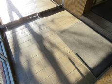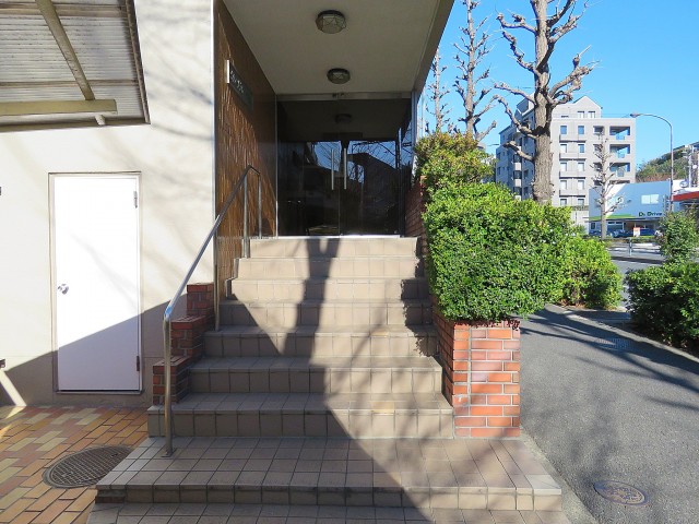 エントランスは階段を上がり、2階部分にあります。
