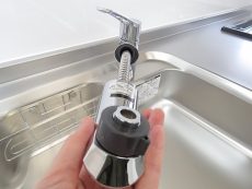 水栓はホースを伸ばしてシャワーとしても利用可能です。お鍋をコンロに置いたまま、お水を鍋へ入れる、なんてこともできそうです。