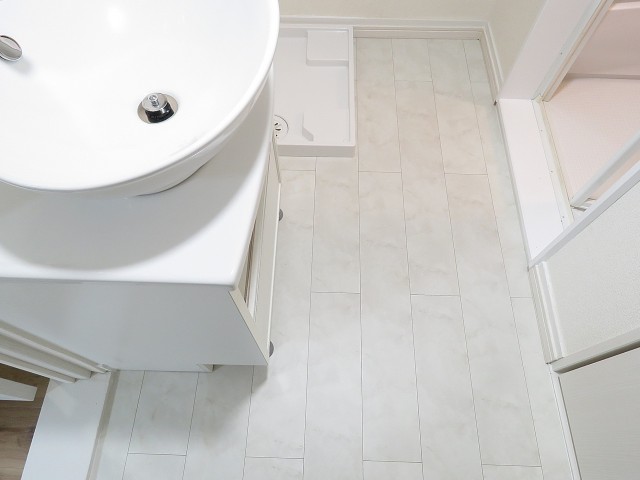 洗面室。フローリングは白っぽい色合いです。