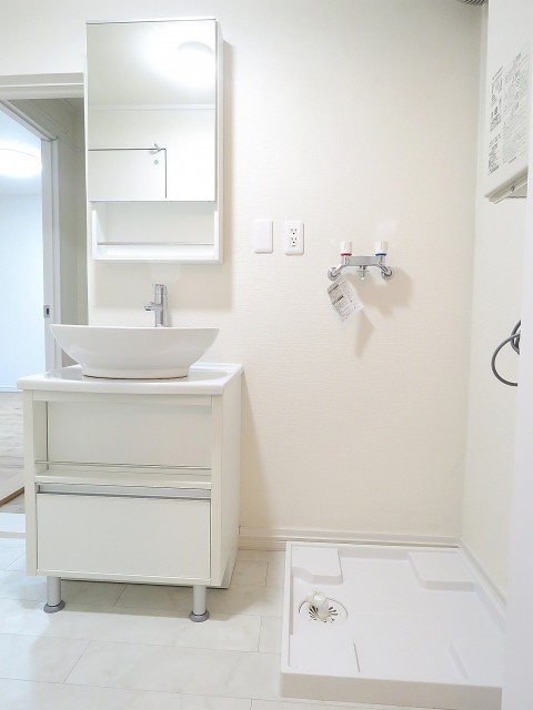 洗面台とランドリースペースが並びます。