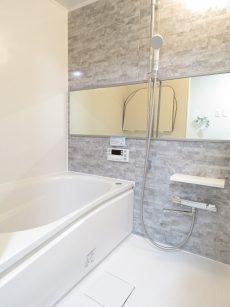 清潔感のあるホワイト貴重のバスルームは追い焚き、浴室乾燥機付き。