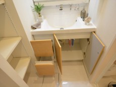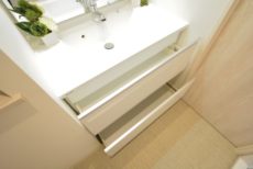 洗面台の下、鏡の裏は勿論、その他にもタオルなどをしまえる棚がついています。