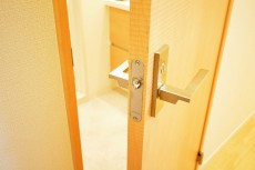 窓の外は外廊下。きちんと面格子も設置されています。残念ながら窓の前は壁なので採光面ではあまり期待できないかもしれませんね。収納は隣のお部屋と同タイプのクローゼット。奥行は少し広くなっているようです。