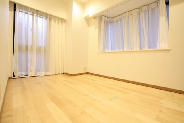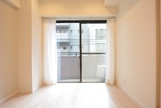 こちらはバルコニー側の洋室。リビングと同様に明るいお部屋です。シンプルな色使いなので家具なども合わせやすいと思いますよ。