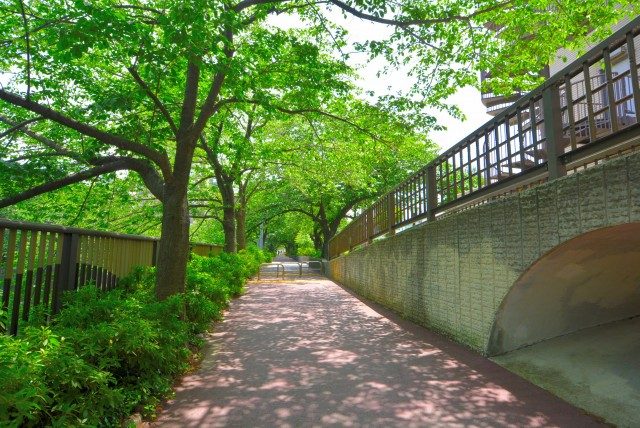 目黒川が見えたら、今度は川沿いの遊歩道を歩きます。