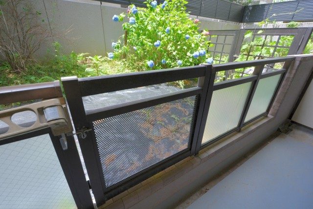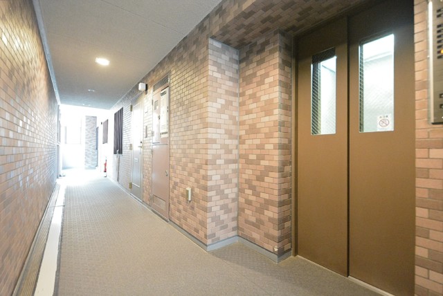 廊下は明るい外廊下部分と、天候などの影響を受けづらい内廊下風の部分があり、今回のお部屋はちょうど境目の辺りになります。