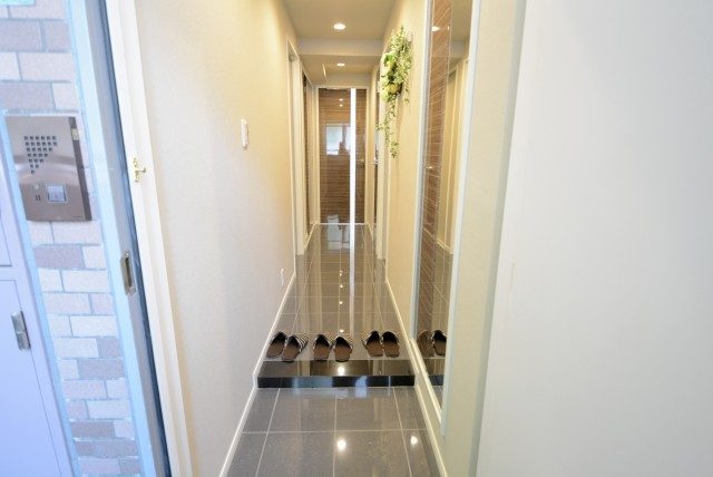 玄関には人感センサー設置。自動的に照明を点けてくれ、暗い中スイッチを探す必要もありません。消し忘れも防げて一石二鳥!いや、いつでも明るいお部屋に帰って来られるのも嬉しいので一石三鳥ですね(笑)