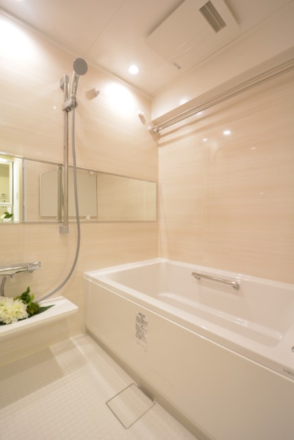 浴室は優しい雰囲気のベージュのパネルを使用。リラックスしたバスタイムを過ごせそうですね♬
