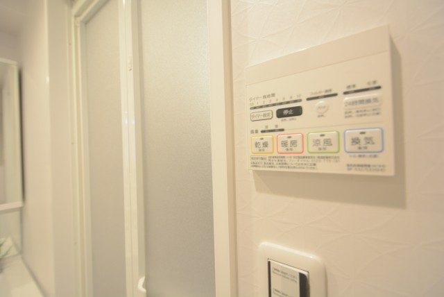 浴室換気乾燥機は浴室の換気の他に、寒い季節の浴室暖房、雨天や花粉の季節のお洗濯物乾燥など様々な働きをしてくれます。「涼風」なんてボタンもあるので暑い季節も大活躍の予感♪♪ 残念ながら冷房機能は無いそうですが、お風呂で濡れた体には十分涼しいですよ。