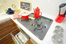 コンロは3口、グリルも付いています。グリルって魚だけじゃなく、野菜や肉など何を焼いても美味しいんですよ。トーストや揚げ物の温め直しなどにも使える出来るヤツです。
