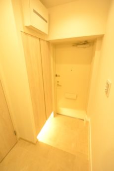 シューズボックスはトールタイプ。収納力抜群、棚を調整すればブーツなどの背の高い靴でも収納可能ですよ。シューズボックスの下にはフットライト付き、足元を明るく照らしてくれています。