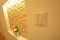 入って右側には人感センサー付きライトと、ニッチスペースがあります。写真のようにお気に入りの花を飾るのも良いですね~(#^.^#)