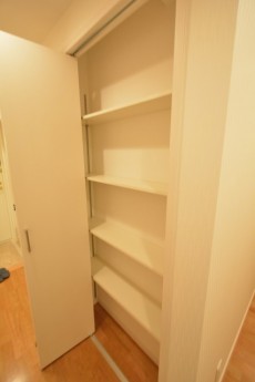 キッチンの脇には食材や調理器具を入れて置けるストックヤードがありました。