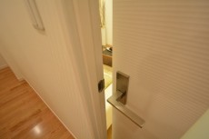入ってすぐの右側には電話機を置いておけるカウンターがあり、その下も収納になっていました☆
