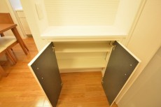 玄関のシューズボックスはトールタイプ。玄関に散らかりがちな靴をすっきり収納してくれますよ。
