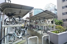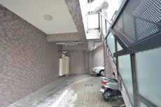 エントランスの手前に機械式駐車場がとバイク置場がありました。