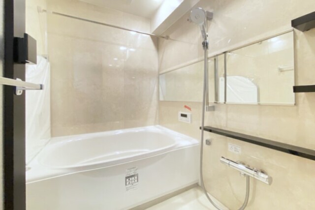 1317サイズの浴室は、優しい色合いのパネルに囲まれたリラックス空間。ゆったりと湯舟に浸かれば一日の疲れも洗い流せそうです♬ 追い焚き機能や浴室換気乾燥機などの便利機能も完備。これからの季節、天気を気にせず洗濯機を回せるのは助かります。