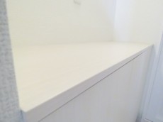 窓際がカウンター状になっているので、シャンプーなどはこちらに並べておきましょう。