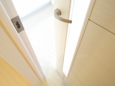 バルコニーへ出る扉は下半分がすりガラスになっています。