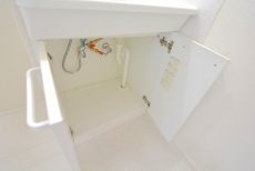 シューズボックスの先の扉を開けると給湯器が入っています。