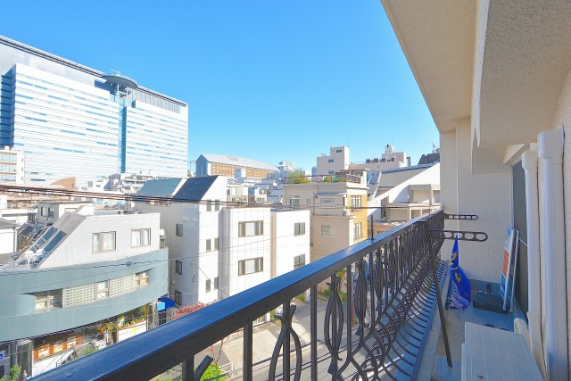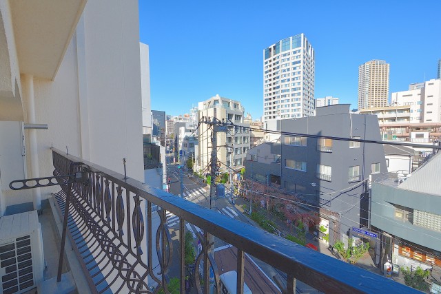 バルコニーの眼下はエントランス前の柳通り。眺望はほどよく抜けています。空も広くみられて快適です♪