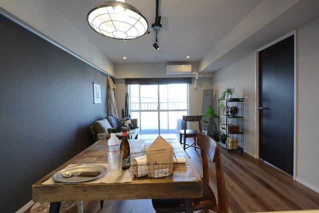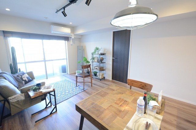 LDKは約14.6帖とゆったりとした空間。シンプルな室内は合わせる家具やファブリックの色合いでお好みの雰囲気に仕上げることができそうです。