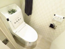 ウォシュレットとペーパーのストックの保管に便利な吊戸棚がついています。