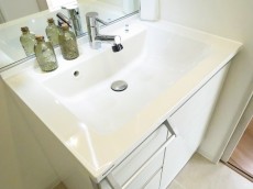 鏡の裏、引き出し、吊戸棚など収納スペースも豊富にあります。