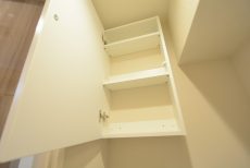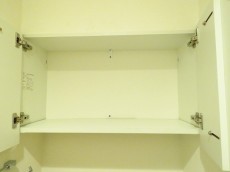 トイレットペーパーのストックや掃除道具を入れるのに便利な吊戸棚も付いています。