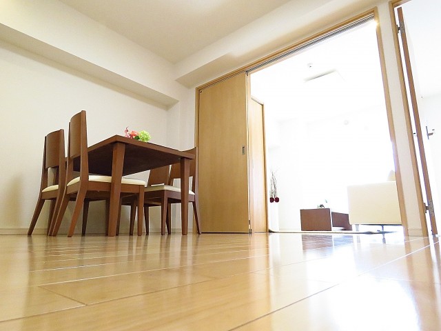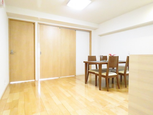 可動式扉をあけ、ダイニングキッチンと約5.5帖の洋室をつなげてLDKとして利用することもできます。扉をあけておくとダイニングキッチンの方も一段と明るくなります☀