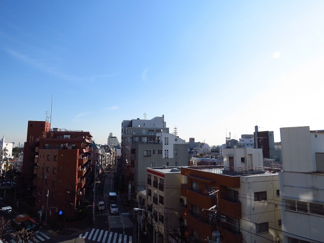 バルコニーの外はエントランス前の駒沢通り。高い建物がないので開放感があります。(バルコニーにでると車の走行音はしますが、扉を閉めればお部屋の中は静かです。)