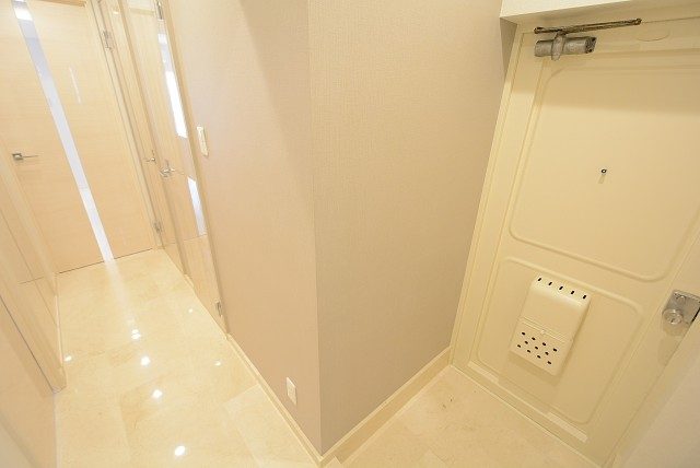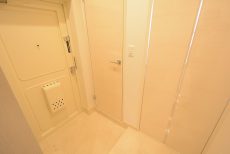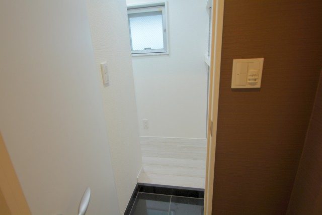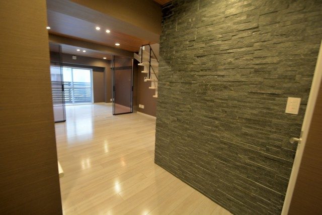 玄関扉をあけた真正面は壁面になっており、一部には調湿・消臭効果のあるエコカラットが使われています。窓がなく臭いが気になるところだけにこれはうれしいですね♪