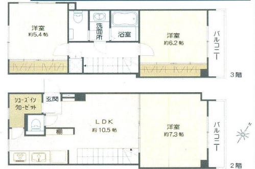 3LDK、77.39㎡、2-3階のお部屋です!