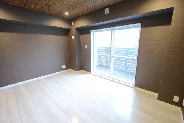 2枚の可動扉側の洋室は約6.0帖。南東向きの窓からふりそそぐ陽ざしはお部屋の奥まで届きます。壁面一面には玄関と同じく調湿・消臭効果のあるエコカラットが使われています。生活臭もこれで軽減するはず・・・!