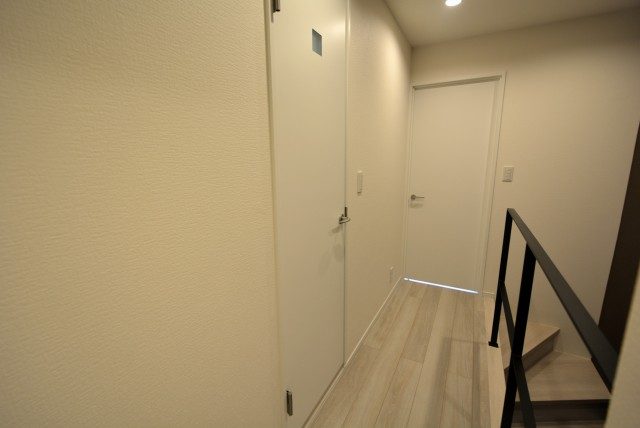 玄関をあがると廊下があり、トイレとDKの扉が並んでいます。