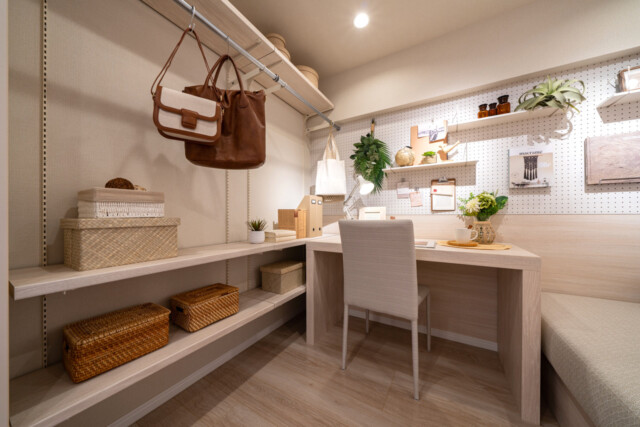 洋室とはなっていますが、デスクやシステム収納、ソファベンチなどが設置されたDENのようなお部屋です。在宅ワークや趣味の部屋として即戦力なのがいいですね。ただし、在宅ワークの際はソファベンチの誘惑に気を付けましょう!